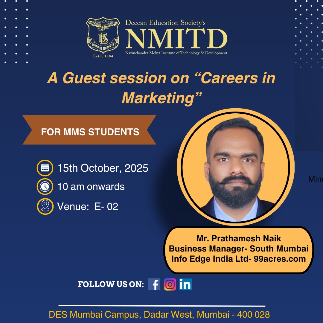 Vachan Prerna Divas -Quiz Trivia Guest Session - Careers in Marketing 🏆 DES’s NMITD(SYMMS) Shines at SEBI & NISM World Investors Week 🏆 Guest Session: Digital Marketing